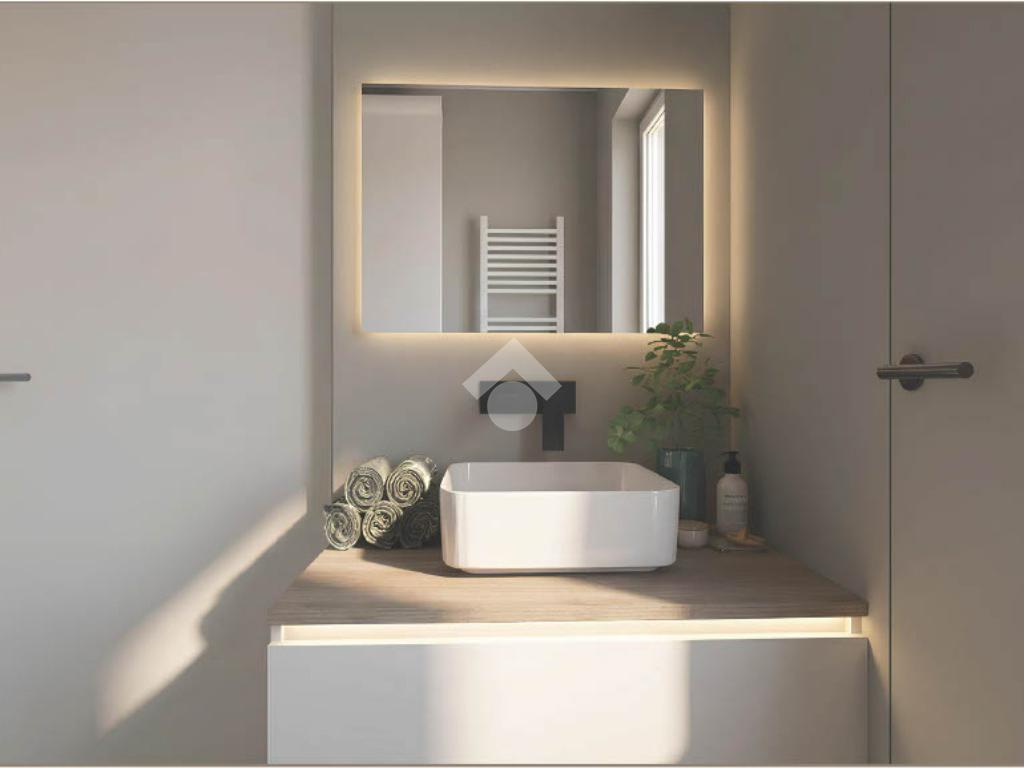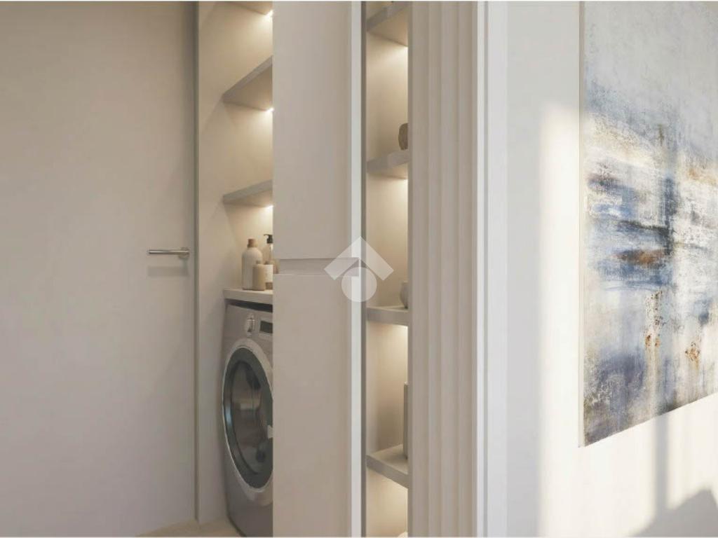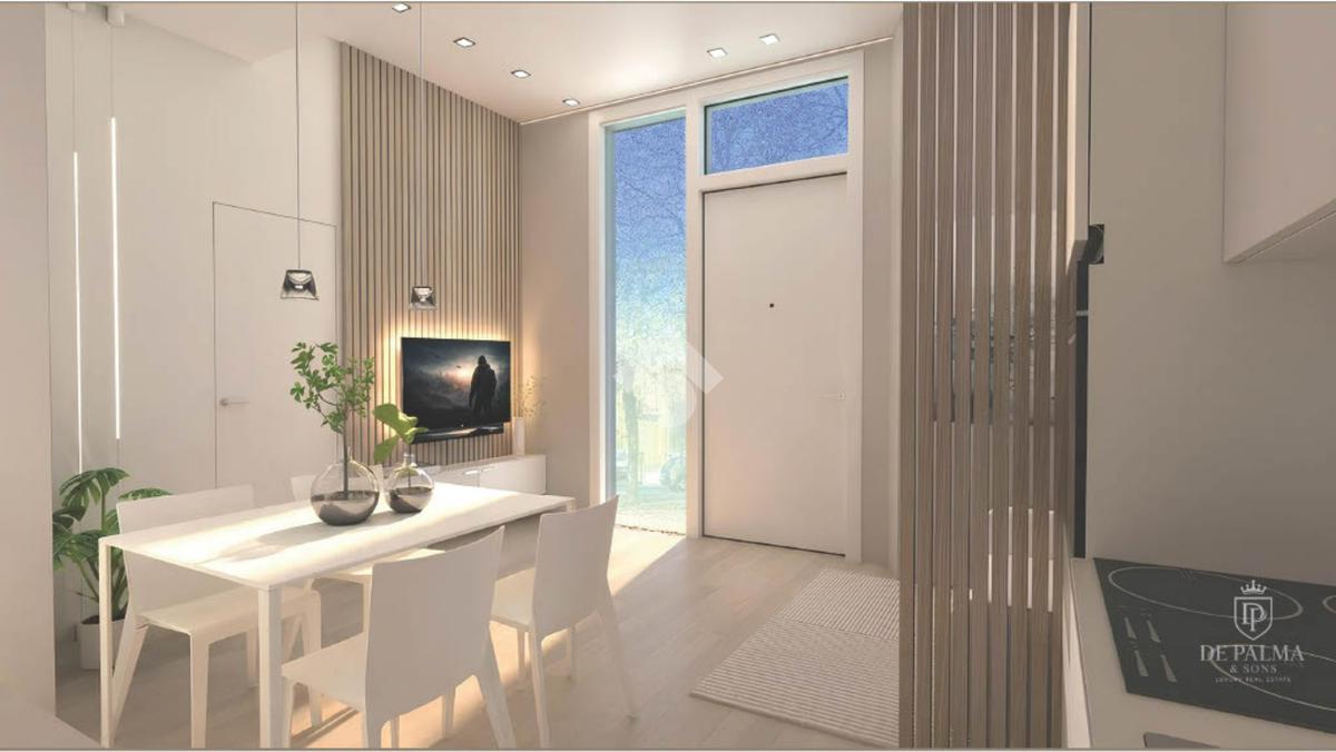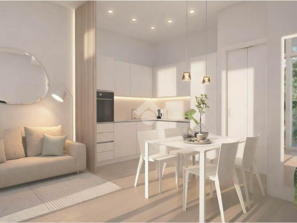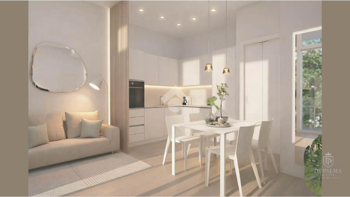 Composizione: ingresso living su soggiorno con cucina totalmente arredata su misura, camera (possibile seconda camera), disimpegno, ampio bagno di design e zona lavanderia.